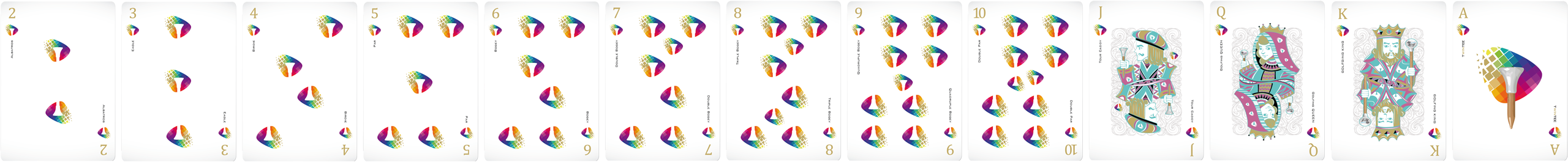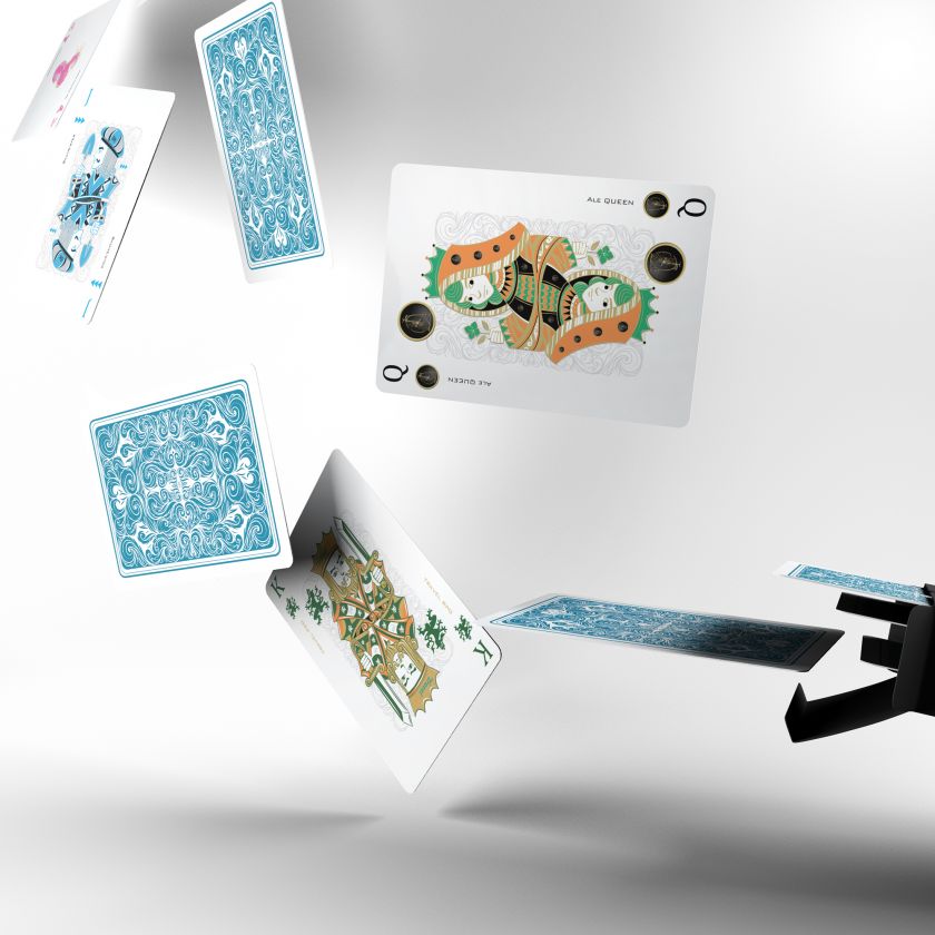 The game is played with a deck of 5 x 13 playing cards of international design and values (from 2 low to Ace high):